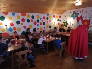 Eingestimmt mit der Nikolausgeschichte (die von den „Großen“ vorgelesen wurde) und gestärkt mit Kakao und Weihnachtskeksen kam der Hl. Nikolaus in den Jungscharraum zu besuch.