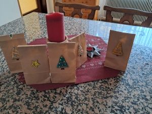 Hier entstanden in fleißiger Handarbeit kleine Weihnachtsüberraschungssackerl!