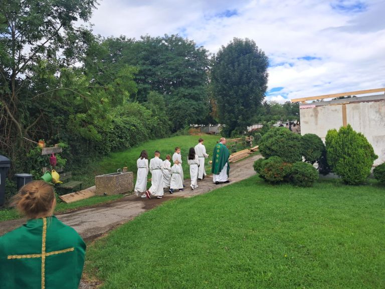 Vergangenen Sonntag (31.8.) war unser Pfarrfest. Wir haben mit einer Heiligen Messe begonnen, zu der Abt Maximilian als Hauptzelebrant gemeinsam mit Fr. Anselm von Heiligenkreuz gekommen sind. Nach der feierlichen, vom Rentnerjugendchor musikalisch umrahmten Messe und der Segnung der Schulkinder ging es weiter auf den Friedhof. Hier wurden die neuen Urnenplätze gesegnet. Was besonders schön war: An jedem der neuen Plätze war eine Abordnung von den Musikkapellen unserer Pfarre: die Trachtenkapelle Haßbach-Penk-Altendorf (TKHPA), die Musikkapelle Grafenbach und die Musikkapelle St. Valentin-Landschach.